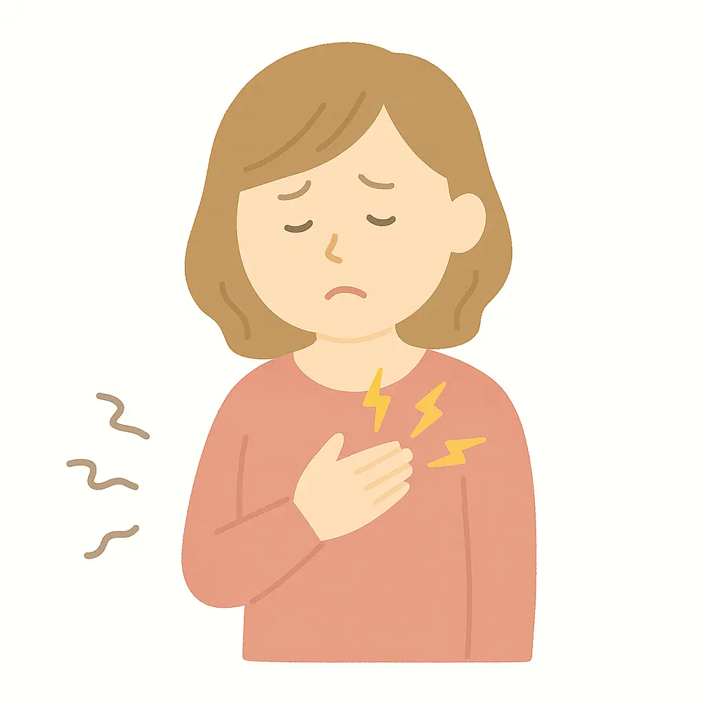 ✔︎ 胸の真ん中辺りが締め付けられる、重い、誰かが乗っているような痛み。